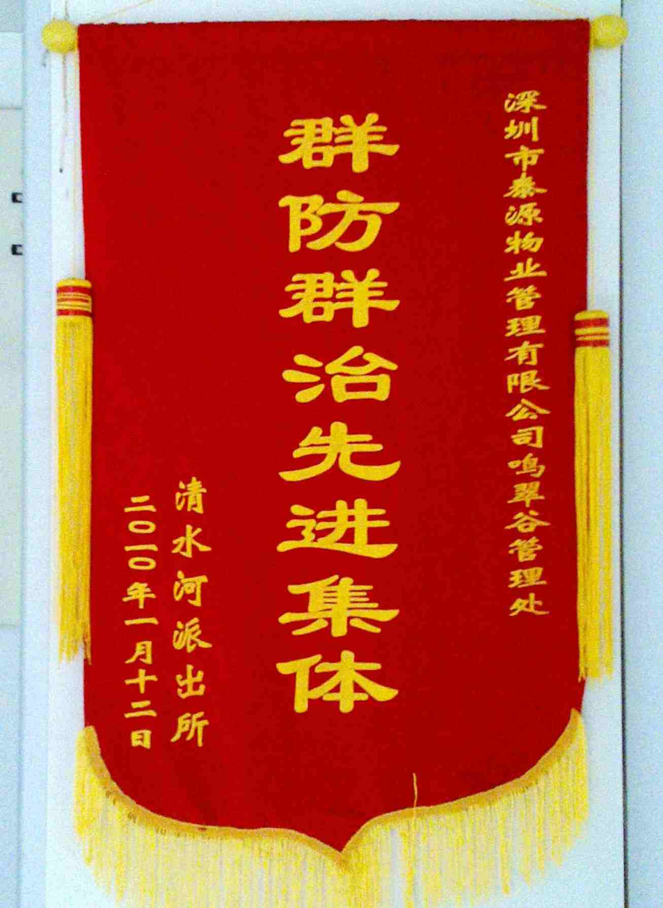 當(dāng)天,我公司吳海奇為夜值崗安管人員,見狀蹊蹺,上前詢問后發(fā)現(xiàn)二人為可疑人員,最終確定為違法亂紀(jì)者,進(jìn)而將其智取。清水河派出所聽聞此事后對(duì)我公司員工提出大力贊揚(yáng),并授予鳴翠谷管理處“群防群治先進(jìn)集體”稱號(hào)。