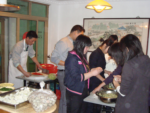 2011年4月15日(星期五)下午16:30分,潤唐管理處組織了基層員工在安管員宿舍包餃子活動。工作人員早早的擺好了桌子,做好了準備,同志們也高興地前來幫忙,大家熱情高漲,有的同志甚至捋起袖子準備大顯身手。不用多說,大家紛紛發(fā)揮自己的特長,搟皮兒的搟皮兒,揪面團的揪面團,包餃子的包餃子,現(xiàn)場氣氛井然有序。有幾位非常有經(jīng)驗的同事耐心地為大家指導,并且對大家包的餃子進行評價,指出不足之處,大家有說有笑,其樂融融。包完餃子后,大家分成幾組一起煮餃子,一切都井然有序,就像是在自己家里一樣不分彼此,相互協(xié)作。餃子一出鍋,有個別員工就忍不住香氣,捏起一只餃子品嘗起來差點燙到自己的嘴巴,逗得大伙笑哈哈。管理處還為員工準備了一些涼菜、水果、飲料。大家圍坐在一起,邊聊邊吃,吃得那么香,那么津津有味,心里美滋滋的。