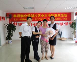 金風(fēng)送爽,中秋月圓。值2013中秋佳節(jié)來臨之際,泰源物業(yè)攜手中國銀行深圳產(chǎn)權(quán)登記中心支行,于9月13日在鳴翠谷業(yè)主活動室聯(lián)合舉辦了銀湖片區(qū)業(yè)主中秋聯(lián)歡活動。