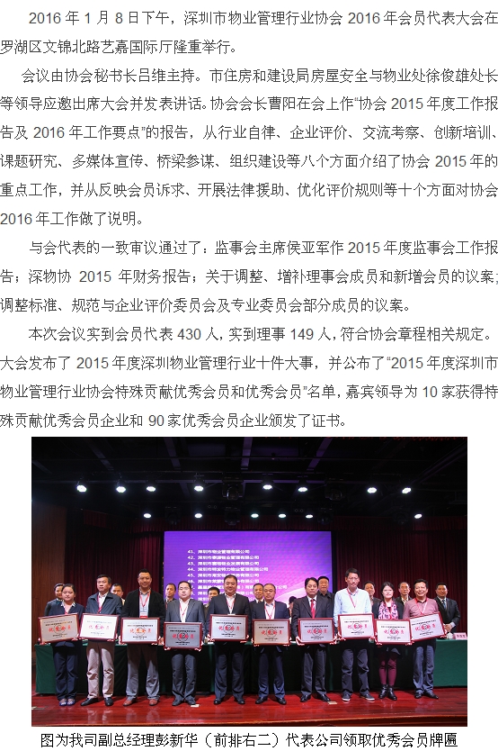 泰源物業(yè)被評為深圳市物業(yè)管理協(xié)會優(yōu)秀會員單位