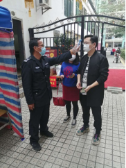 汪斌為業(yè)主進出小區(qū)測體溫 張貼溫馨提示 為居家隔離業(yè)主送快遞