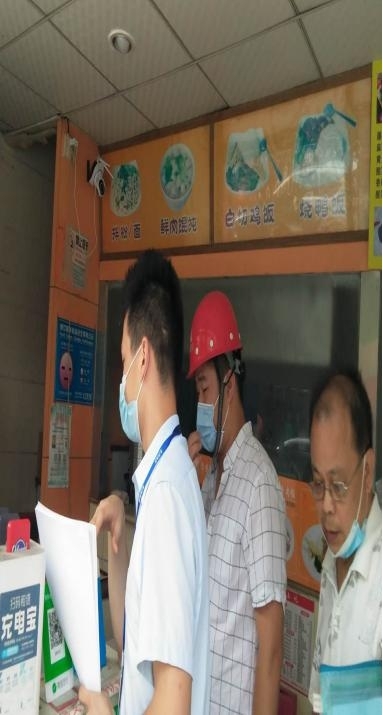 下圖為管理處人員與施工方向商戶宣傳施工時間、搭建防護架維護安全: