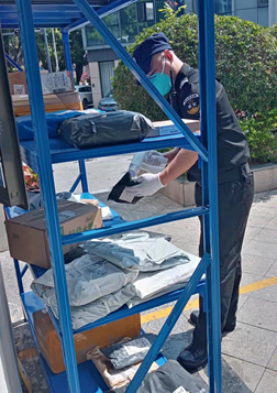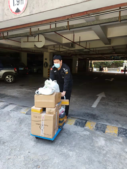 快遞物品整理放置,實(shí)行消毒,無接觸配送。